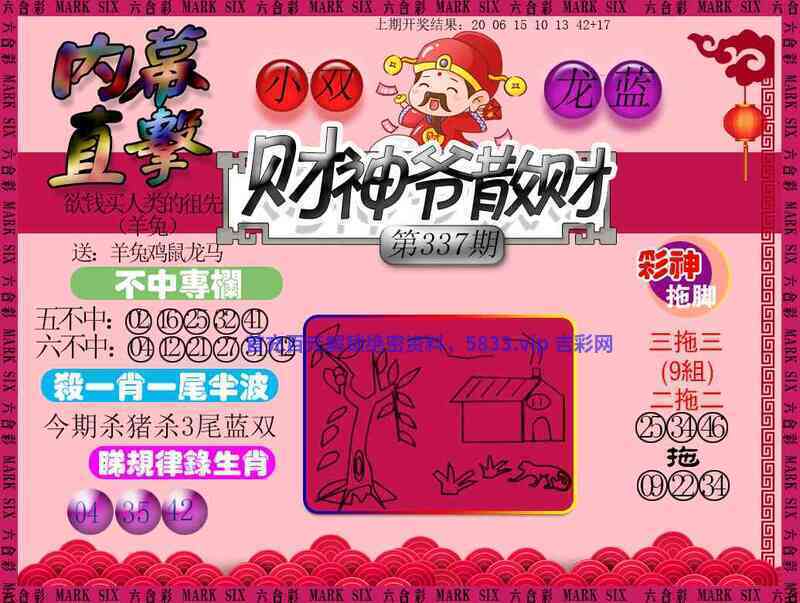 | 337期:♣♣♣两波六尾♣♣♣开:鸡09错 【红波绿波】+【124578尾】 |